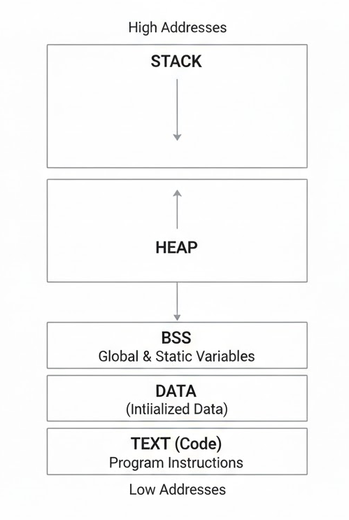 - Uninitialized Data (BSS): 초기값이 없는 변수.